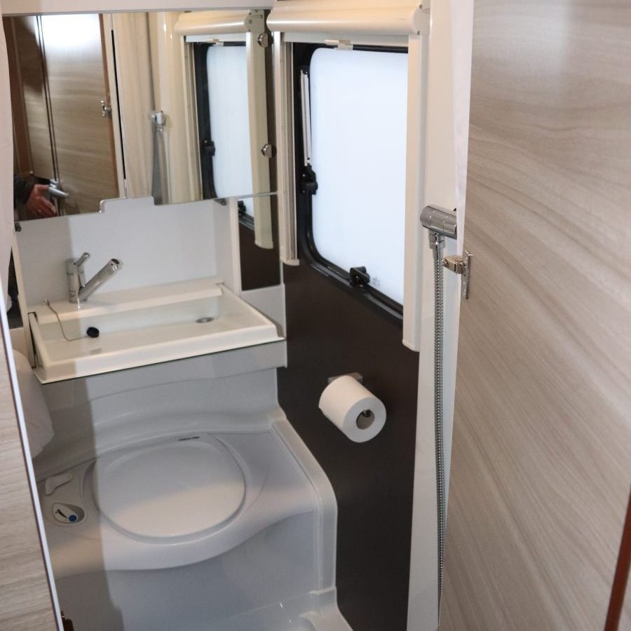 Caractéristiques techniques — Longueur totale : 6,78 m; poids à vide : 1150 kg avec accessoires ; PTAC : 1 500 kg ; tare : 350 kg ; simple essieu. Couchages : lit fixe à la française, grand salon/SAM en U convertible en lit. Cuisine : cuisinière 3 feux gaz, réfrigérateur, plan de travail fonctionnel. Salle de bain : WC cassette, douche, lavabo téléscopique, réservoir d’eau. Rangements : penderie et nombreuses armoires optimisant l’espace disponible. Chauffage: système circulaire pour sports d’hiver et chauffage statique. Éclairage: grande lanterne apportant luminosité.
