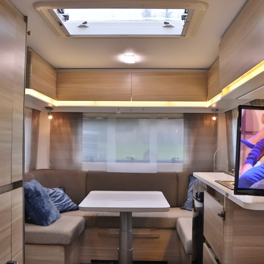 Utilisation recommandée — Idéale pour couples ou petites familles de 4 personnes recherchant confort et praticité. Configuration parfaite pour des séjours prolongés grâce à un éclairage fixe permanent nécessitant une installation quotidienne. Chauffage circulaire permettant une utilisation en sports d’hiver et froides.Système Mover simplifiant grandement les manœuvres et l’installation sur les emplacements de camping.