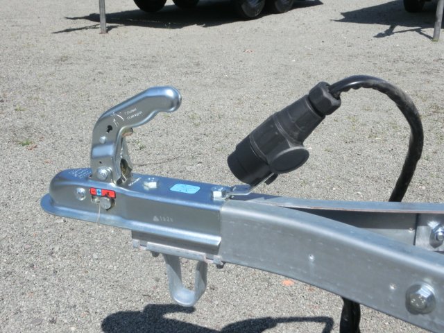 État et révision — Bon état général vérifié. Révision complète effectuée récemment. Éléments vérifiés: structure du châssis et intégrité générale absence de fissures ou déformations structurelles, parois latérales en aluminium état et solidité vérifiés, absence de corrosion confirmée, paroi avant rabattable mécanisme de rabattement testé, ouverture et fermeture fluides, verrouillage sécurisé vérifié, plancher sérigraphié état de la surface antidérapante et solidité contrôlés, timon en V état structurel et fixation au châssis vérifiés, absence de déformation, quatre œillets d’arrimage fixations robustes et absence de jeu confirmées, boutons de bâche état et fixations solides vérifiés, attaches à tension fonctionnement et élasticité testés, ailes en plastique état général et fixations contrôlés, pneumatiques profondeur de sculpture et pression vérifiées, usure homogène contrôlée, roulements de roues graissage et absence de jeu vérifiés, feux de signalisation et câblage électrique fonctionnement complet testé, prise 13 broches continuité électrique vérifiée, système d’attelage verrouillage sécurisé et absence d’usure excessive. Tests de charge et de stabilité effectués avec succès. Aucun défaut structurel majeur détecté.