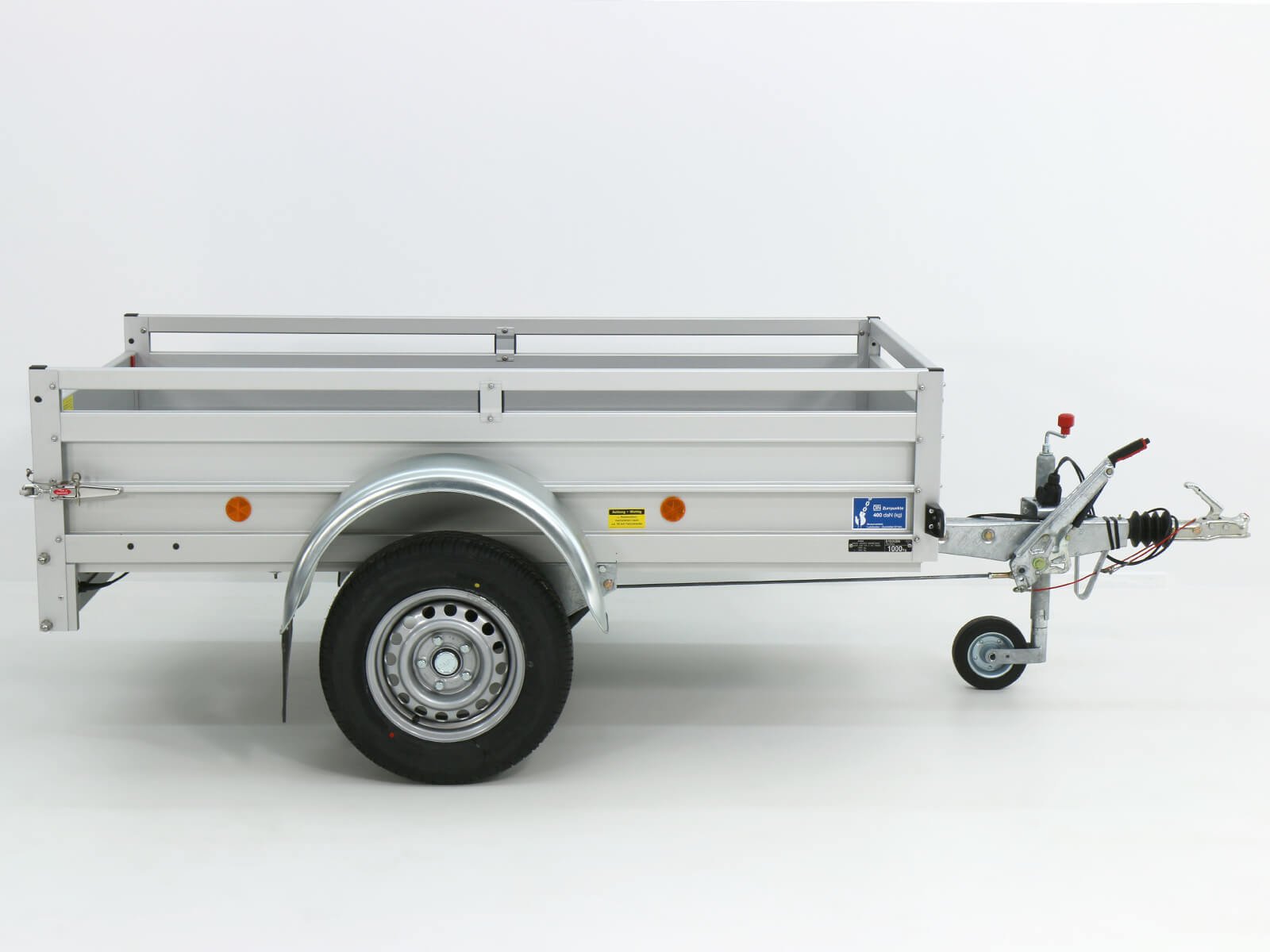 Utilisation recommandée — Idéale pour le transport de matériaux de construction légers, outils professionnels, équipements de jardinage, déchets verts, gravats, terre, sable ou charges diverses nécessitant remorque compacte et maniable. Adaptée aux particuliers bricoleurs, jardiniers, artisans, paysagistes et professionnels du bâtiment nécessitant solution de transport polyvalente pour usages réguliers. Dimensions compactes de 2,05×1,05 m facilitant maniabilité en espaces restreints, rangement dans garage ou cour et tractage par véhicules légers. Parois latérales en aluminium de 45 cm de hauteur permettant maintien latéral des charges tout en facilitant chargement et déchargement latéraux. Œillets de raccordement coulissants en acier inoxydable facilitant positionnement flexible des sangles d’arrimage selon taille et forme des charges pour sécurisation optimale. Charge utile de 840 kg adaptée aux transports moyens de matériaux, outils ou équipements sans dépasser PTAC réglementaire de 1000 kg. Amortisseur de roue permettant vitesse acceptée jusqu’à 100 km/h facilitant déplacements rapides sur routes et autoroutes pour trajets efficaces. Roue jockey facilitant manœuvres en espaces restreints et stationnement stable lors de chargements ou déchargements. Timon en tube robuste assurant résistance structurelle et connexion fiable au véhicule tracteur. Options de personnalisation disponibles permettant adaptation selon besoins spécifiques plancher aluminium pour hygiène facilitée, supports arrière pour charges longues, bâches plates ou hautes pour protection contre intempéries, couvercle aluminium pour sécurisation, élévations de parois de 15 cm à 45 cm pour augmentation de la capacité volumétrique. PTAC de 1000 kg permettant tractage avec permis B sans nécessiter permis spécifique.