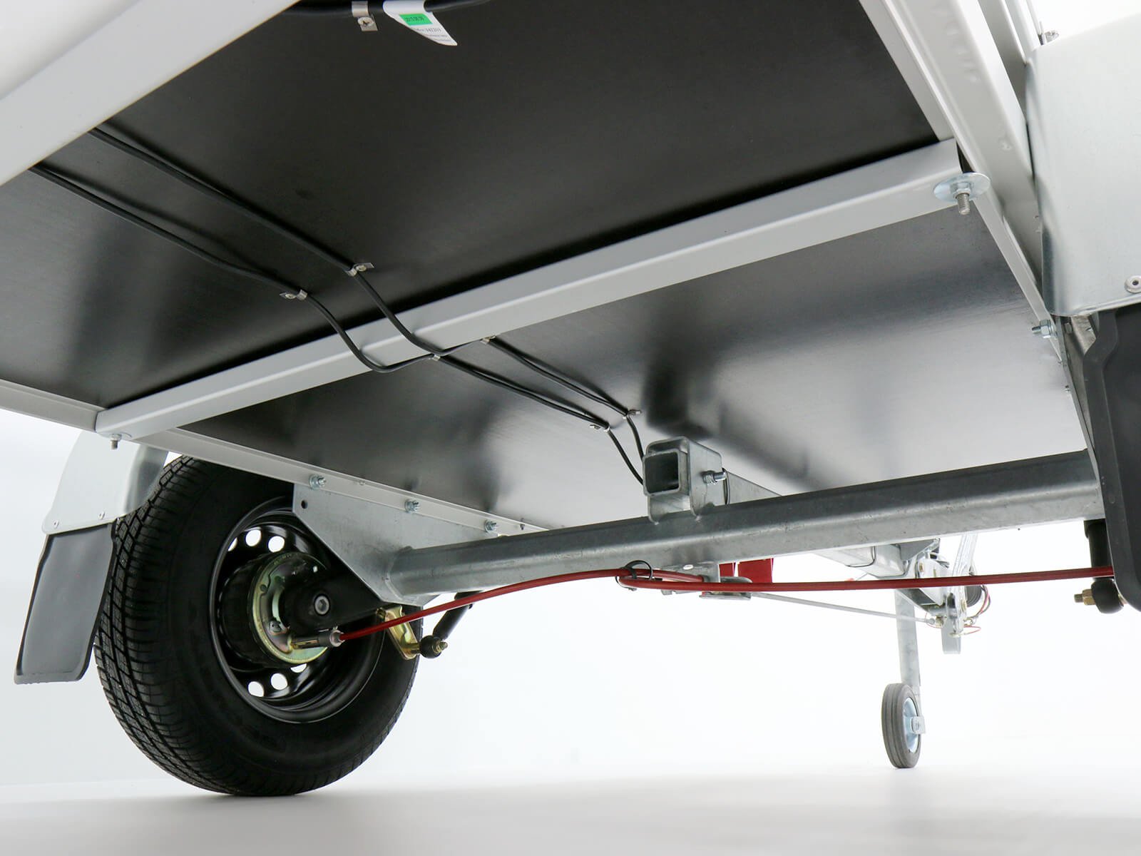 Remarques — Fournie avec parois latérales aluminium, œillets de raccordement coulissants inox, raccord à vis complet inox, ferrures inox, base sérigraphiée, amortisseur de roue 100 km/h, timon en tube, ailes en acier, roue jockey et prise 13 broches. Carte grise incluse. Configuration standard sans plancher aluminium, supports arrière, bâches ni élévations de parois; options disponibles sur demande pour personnalisation selon besoins spécifiques. Vérifier la compatibilité de l’attelage avec votre véhicule tracteur avant utilisation; permis B suffisant pour PTAC de 1000 kg. Sangles d’arrimage non incluses; prévoir des sangles homologuées de qualité adaptées au poids et au type de charge transportée. Entretien recommandé: contrôle régulier de la pression des pneumatiques et de la profondeur des sculptures avant chaque trajet; vérification du bon fonctionnement de l’amortisseur de roue; inspection de l’état des parois latérales en aluminium; vérification du serrage des œillets de raccordement coulissants inox et du raccord à vis complet; graissage périodique de la roue jockey; inspection de l’état du timon en tube et de ses fixations; vérification des ferrures inox et des ailes en acier; contrôle du fonctionnement des feux de signalisation et de la prise 13 broches; nettoyage après chaque utilisation pour prévenir accumulation de débris. Respecter le PTAC de 1000 kg et la charge utile de 840 kg pour un usage sécurisé et conforme à la réglementation routière. Répartir uniformément les charges sur le plateau pour garantir stabilité et sécurité en circulation.