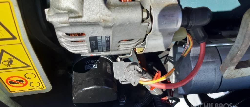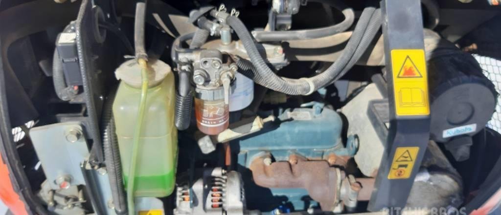 Mini pelle compacte 1,5 tonne 3880 heures entièrement révisée avec moteur Kubota D782-BH 9,6 kW, 3 godets, attache rapide, chenilles caoutchouc 230 mm. Dimensions 0,99 x 2,35 m, traînée profondeur 2,25 m, force 12,7 kN, 2015.